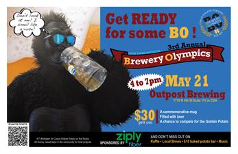 Ziply Fiber presents Coeur d'Alene Evening Rotary's 3rd annual Brewery Olympics Night at Outpost Brewing on Saturday, May 21st. Enjoy local brews, baked potato bar and music. $30 to compete in games with a chance to win various prizes (ticket includes a free beverage). EVENTS: Giant Bucket Beer Pong, Putting Green Challenge, Ring Toss, Idaho Potato Toss, Cornhole, Axe Throwing, Rubber Duck Pull, Nerf Target Practice, Ladder Toss.